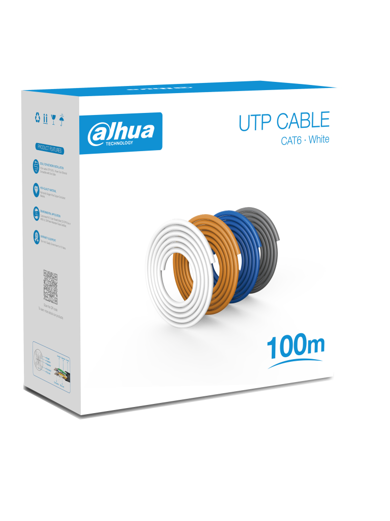 DAHUA PFM920I-6UN-C-100 - Bobina de 100 Mts de Cable UTP Cat6/ 100% Cobre/ Color Blanco/ Cubierta Retardante de Flama con Certificación CE CPR Eca/ Ideal para Video y Redes/